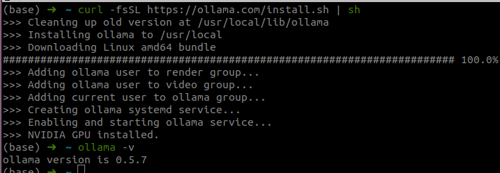 정상적으로 설치되었다면, 오류 대신 Ollama의 버전 번호가 표시될 것입니다.