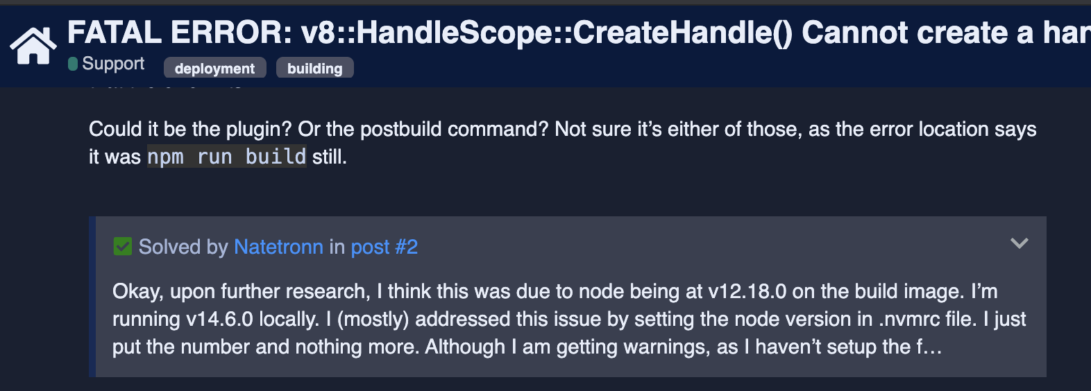 answers.netlify.com/t/fatal-error-v8-createhandle-cannot-create-a-handle-without-a-handlescope/22957
