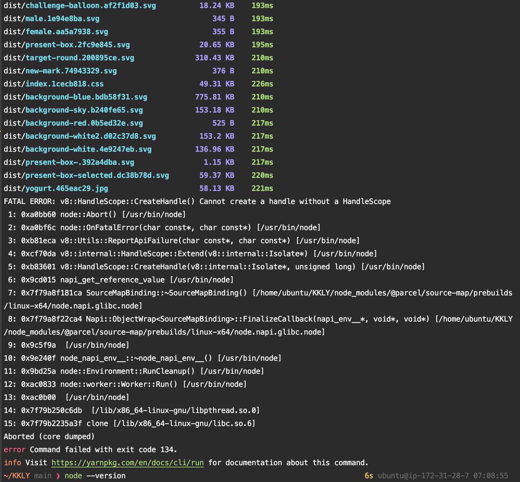 yarn build 할때 오류가 생겼다. CORS problem이나 null, undefined를 참조할 수 없는 흔한 에러가 아닌 FATAL ERROR: v8::HandleScope 에러가 발생 했을때 검색을 해도 사실 막상 들어가보면 내용이 시원찮다.