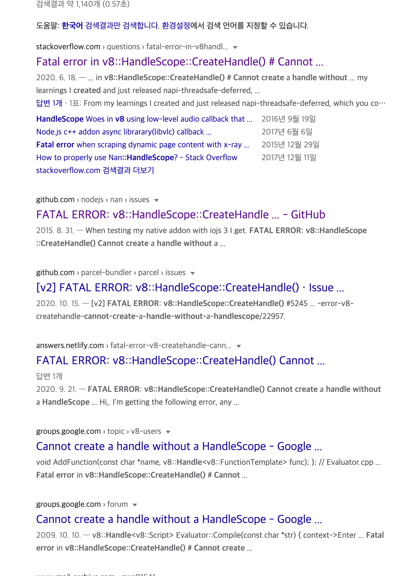 yarn build 할때 오류가 생겼다. CORS problem이나 null, undefined를 참조할 수 없는 흔한 에러가 아닌 FATAL ERROR: v8::HandleScope 에러가 발생 했을때 검색을 해도 사실 막상 들어가보면 내용이 시원찮다.