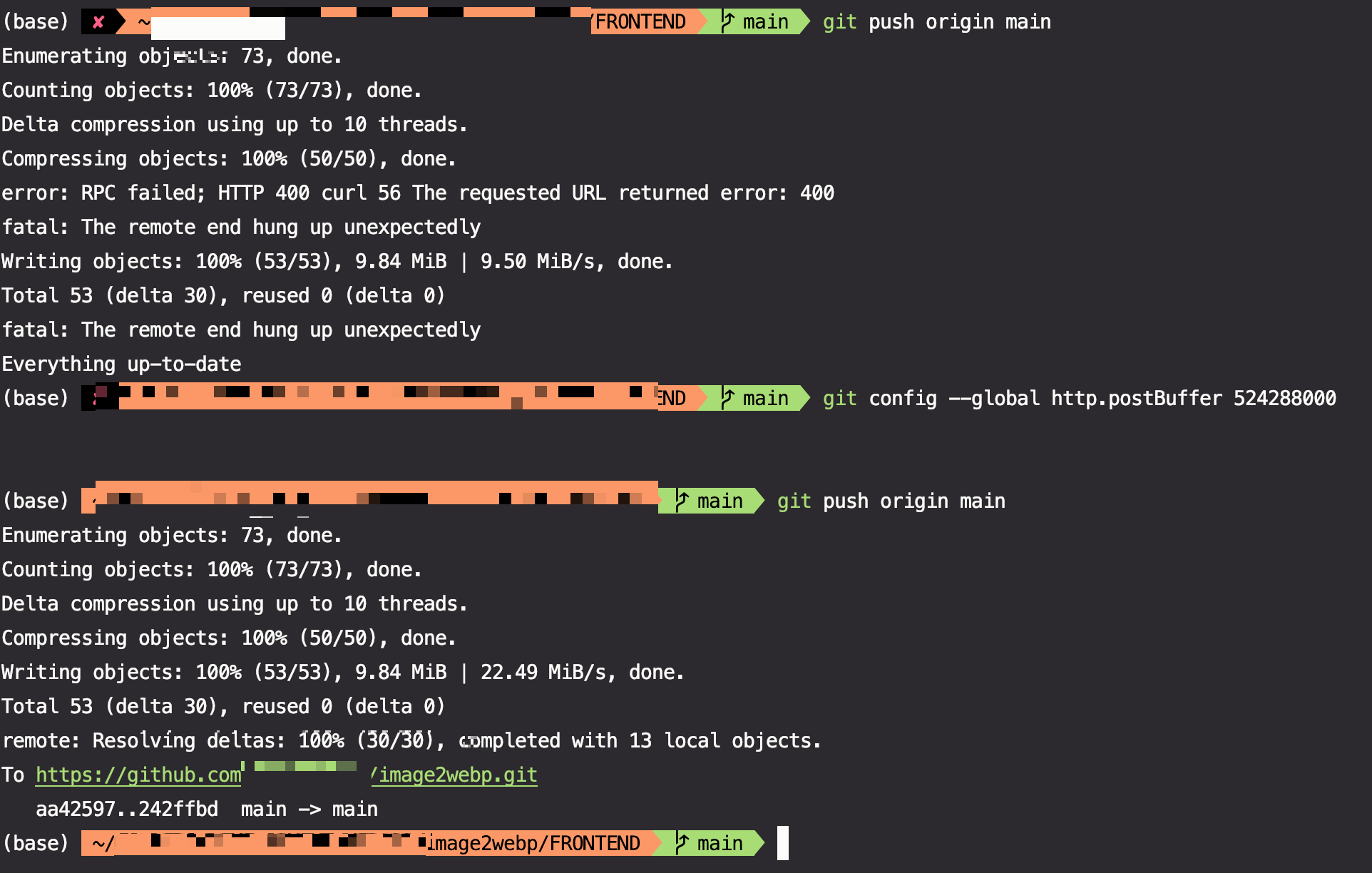 error: RPC failed; HTTP 400 curl 56 The requested URL returned error: 400