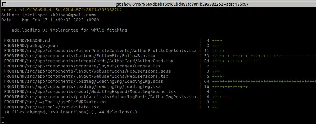 이 명령어는 해당 커밋에서 변경된 파일 목록과 각 파일의 변경된 줄 수를 요약해줍니다.