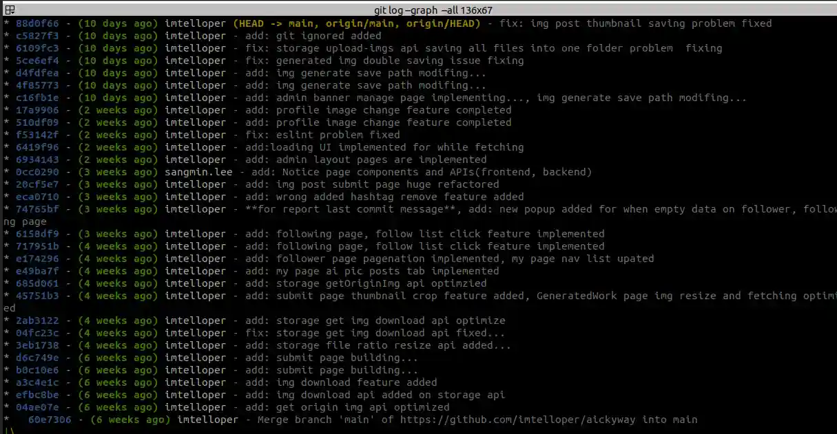 다음 명령어를 사용하면 프로젝트의 Git 커밋을 보다 명확하게 확인할 수 있습니다: